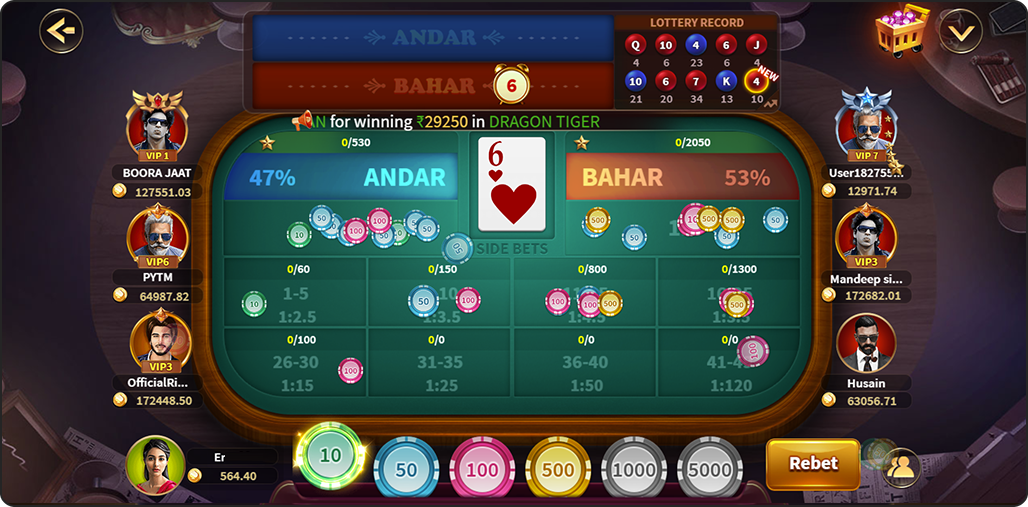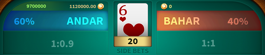 Andar Bahar is full of fun. Apart from the main bet, there are at most 8 side