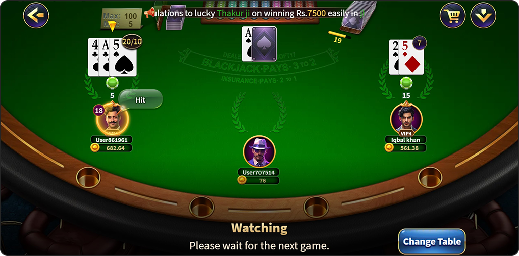 The main purpose of the game is to play against the dealer by gathering the more points possible. Use your cards, win by reaching a number closest to 21 without surpassing it.