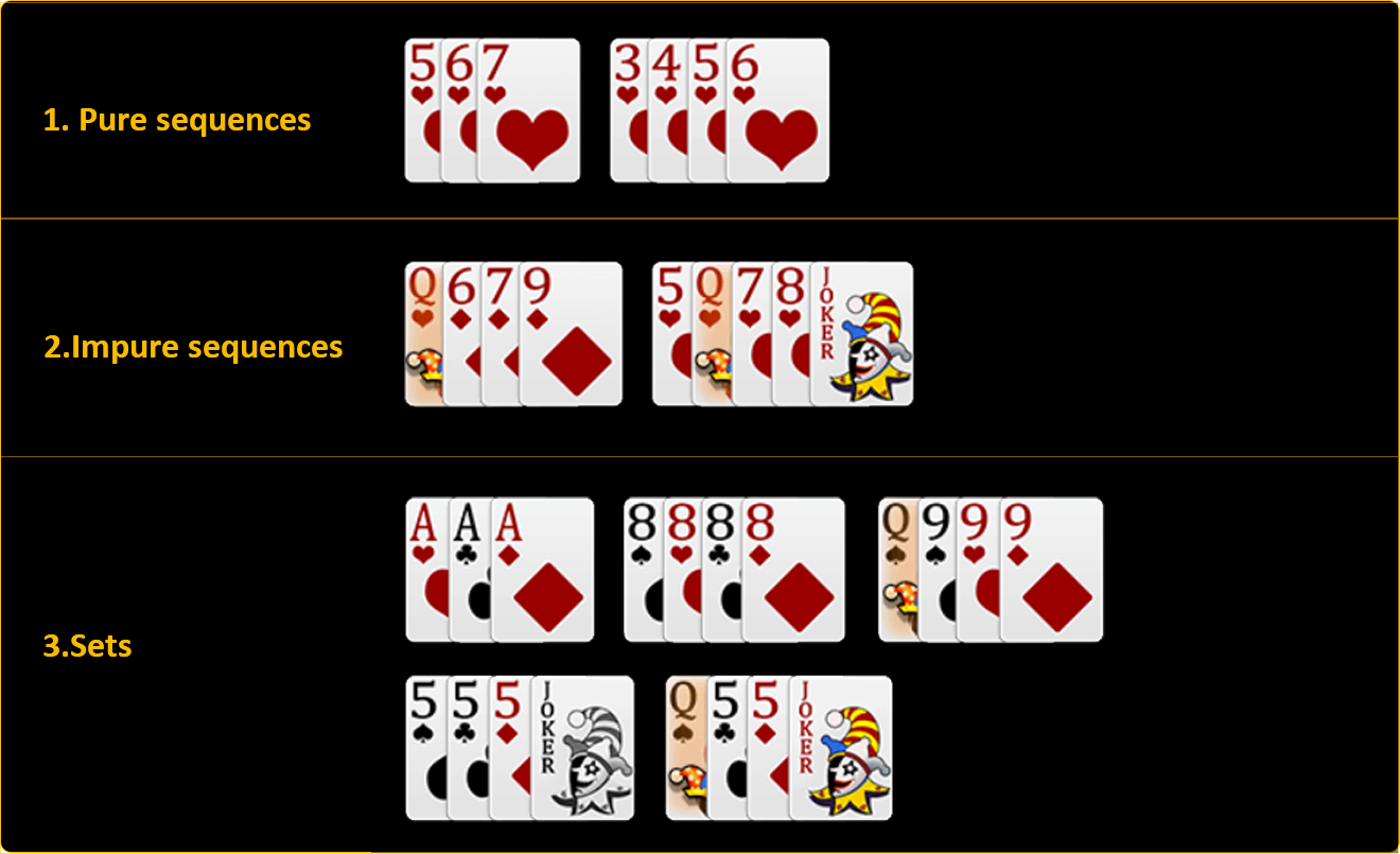 The Object of rummy card game is to arrange the 13 cards in valid sequences and sets.