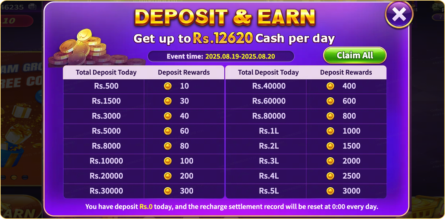 Recharge Rs.500+ to unlock lifetime VIP benefits, including: Promotion bonuses, Daily recharge rebates, Daily betting rewards, Weekly loss rebates